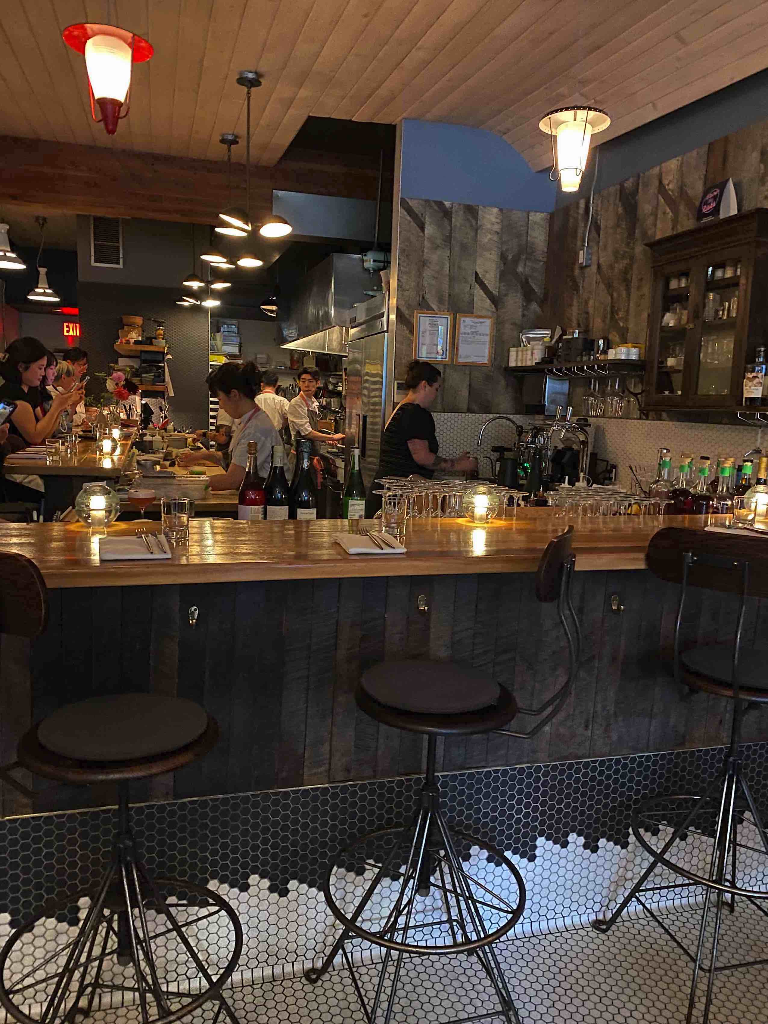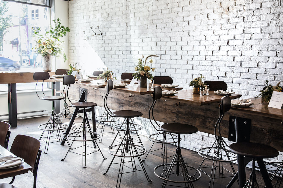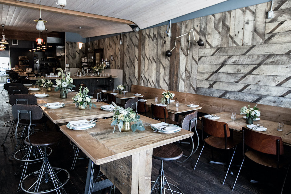 這家餐廳由Chef Andrea Carlson的合伙人人及建築師Kevin Bismanis設計,採用減少環境影響的建材,木樑、餐枱桌面和餐廳後進環繞著開放式廚房的酒吧台面均採用回收的古老冷杉木製成,南牆上的木板則來自低陸平原Agassiz一座已拆除的19世紀末穀倉,室內氛圍宛如一家鄉居的溫馨小酒館。