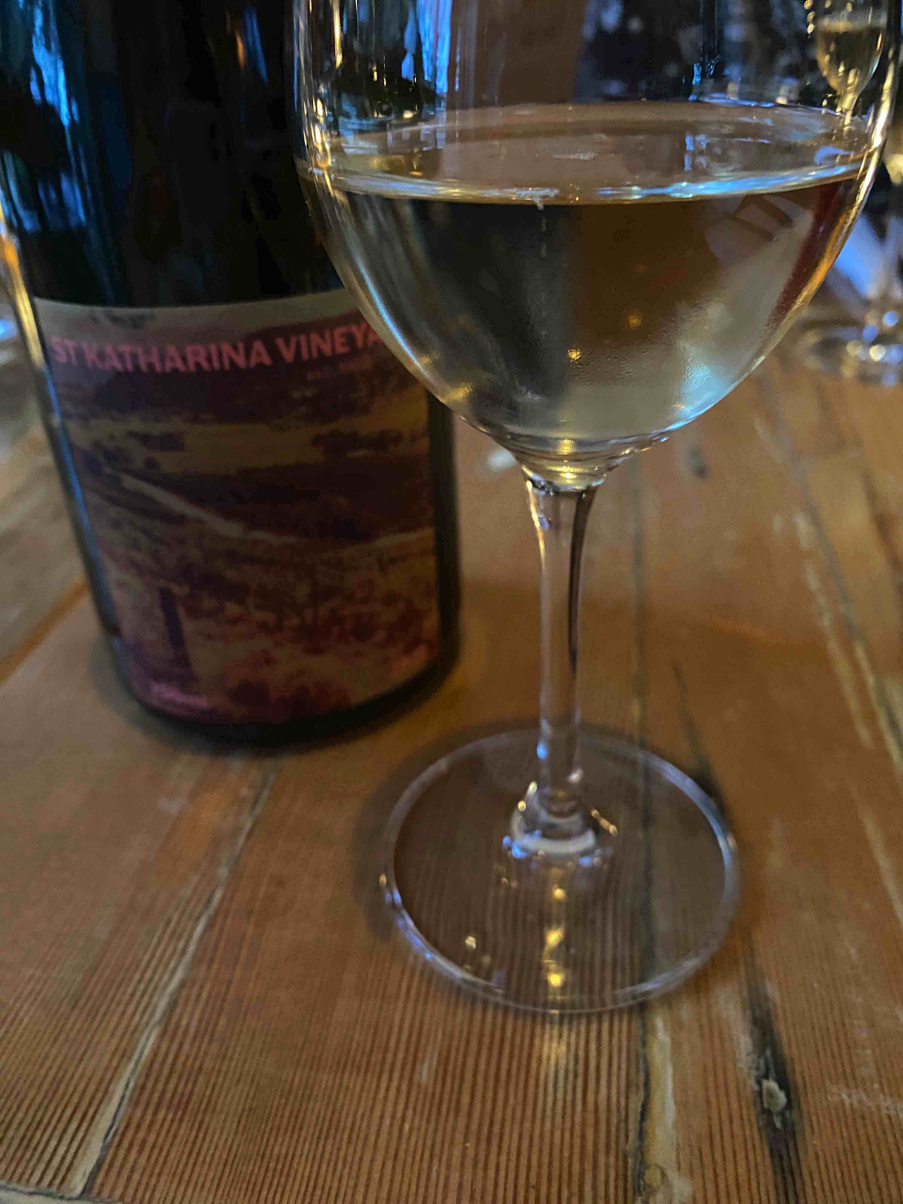 這支以傳統法釀成的自然酒品2020 St. Katharina Vineyard Traditional Method Pinot Noir在上市前經過四年陳釀,譽之為本省最好的氣泡酒之一實至名歸。聞香有檸檬皮、烤麵包、焗蘋果批等香味,入口有檸檬、杏仁、洋甘菊的味道和奶油般的口感,慕斯似的泡沫持久悠長,無論是純飲還是配菜都一樣討好。