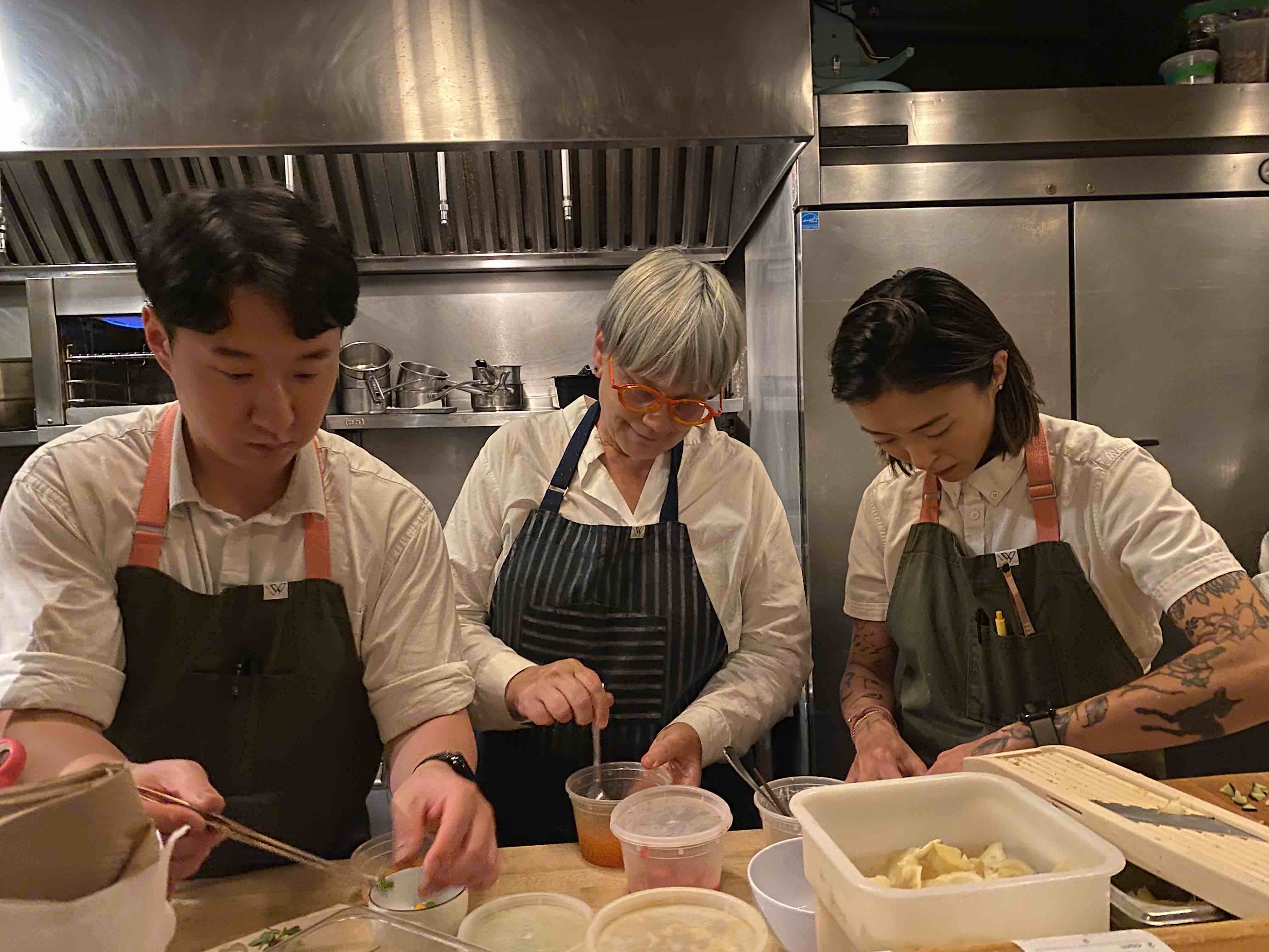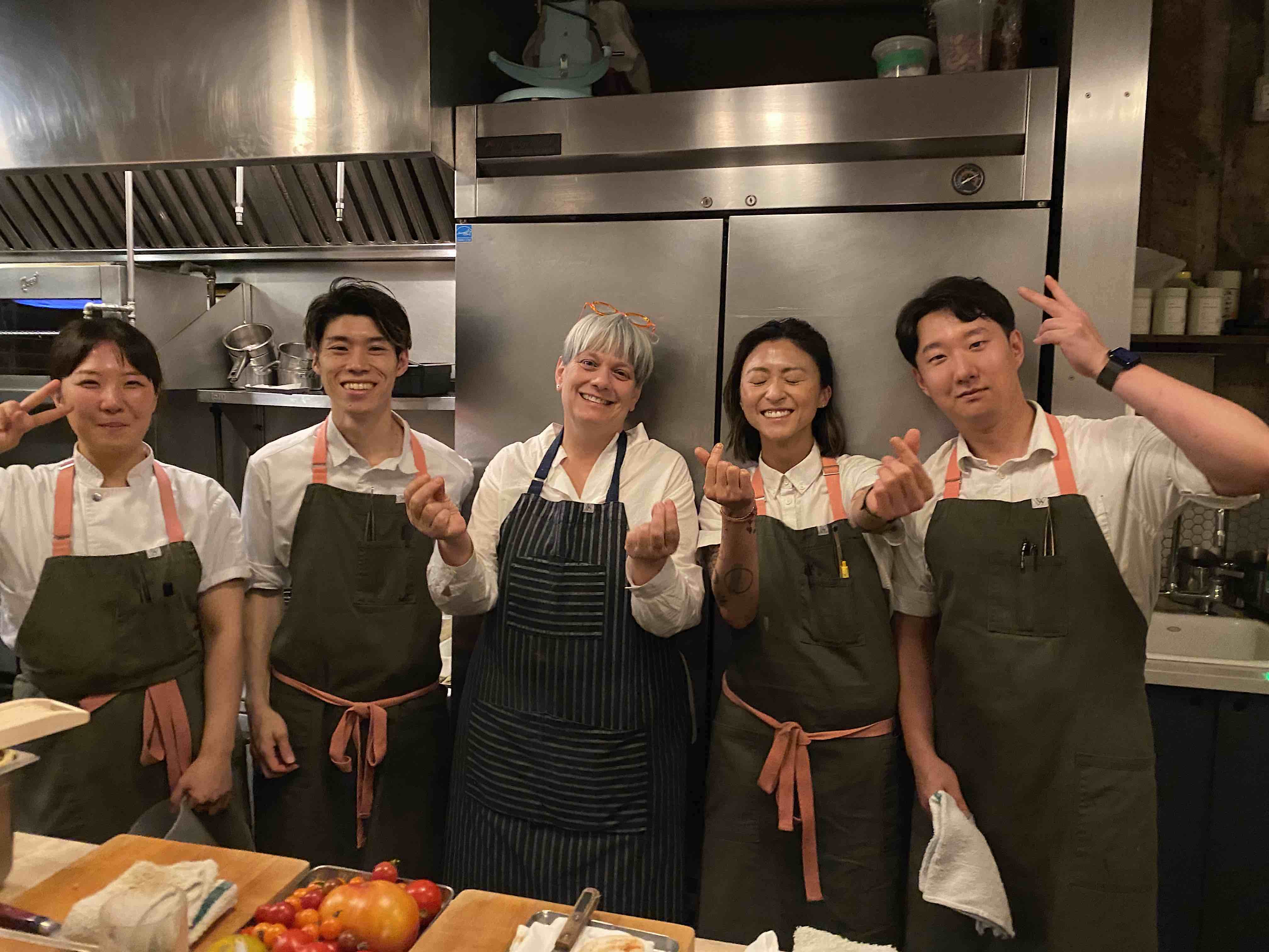 Chef Andrea一向鼓吹以輕鬆隨性的心態——lighthearted來慢活。只要你坐在吧台前,看著一溜五、六位年輕的廚師和她比肩下廚,看著她以身教言傳來傳承多年累積的經驗和廚藝,看著這些年輕的廚師們的幹勁和專注,不難明白,Burdock & Co.菜單能推陳出新及餐廳氛圍的溫馨和活力自何而來。