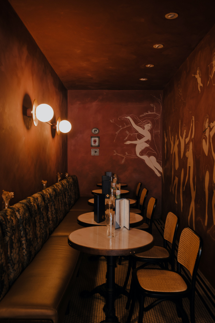 最裡面空間的三面牆身髹上了一眾祼女行樂和小天使的古羅馬式壁畫,成為最私密也最戲劇性的隱蔽角落,和街區的舊世界氛圍無由地契合。