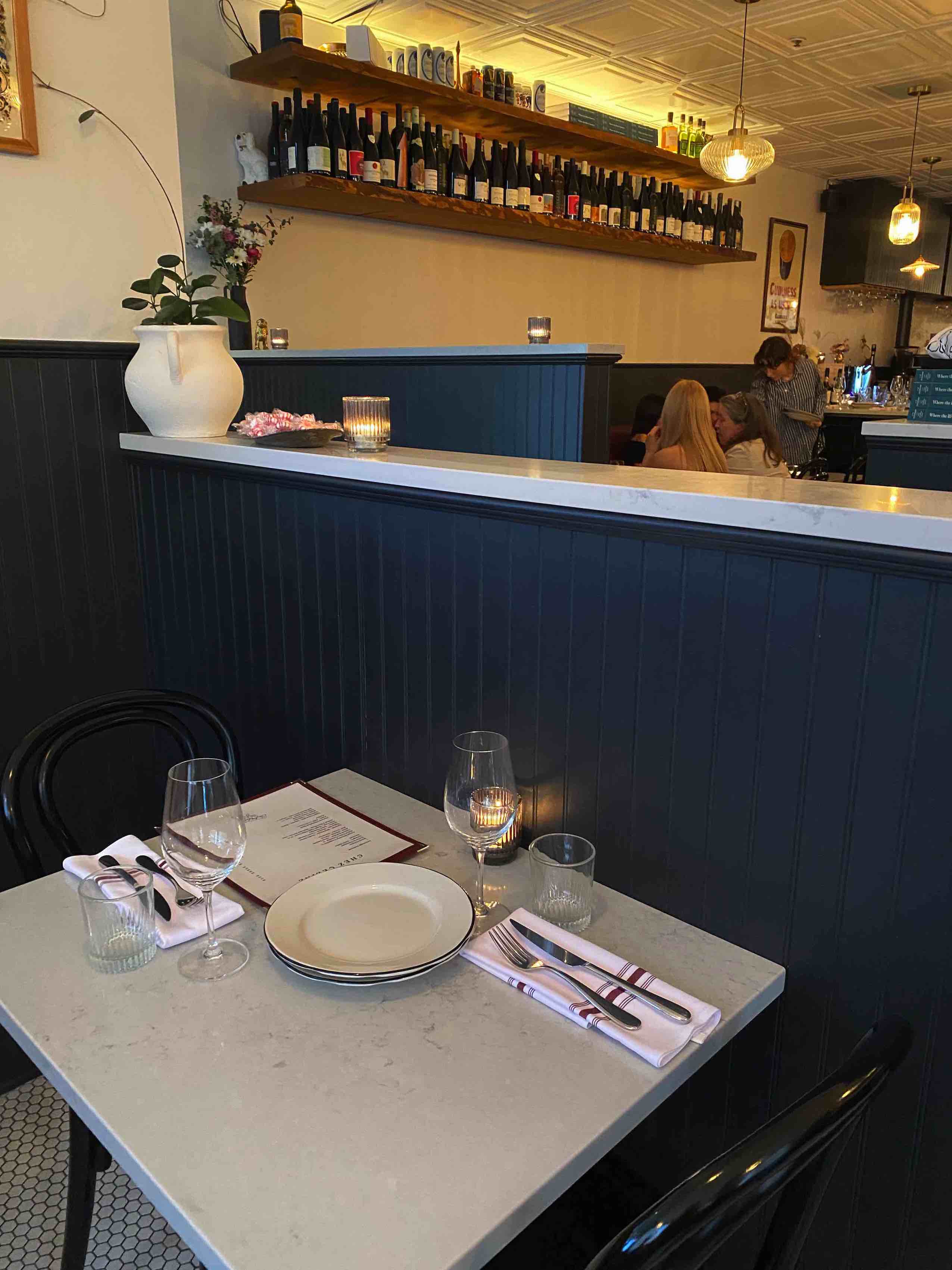 因位處Fraser Street及27th Ave.街角,餐廳正側兩方均有落地大窗,讓這佔地 1,400 平方呎,設有 52 個座位的餐間顯得份外光潔明亮,視野開闊。靠牆的頂層木架是美酒的陳列展區,下面擺放了紅皮革長椅。半人高的擋板間隔,在這不算大的空間裡製造了少許私密感。酒吧在最裡面,只可容4位客人親密地安坐。