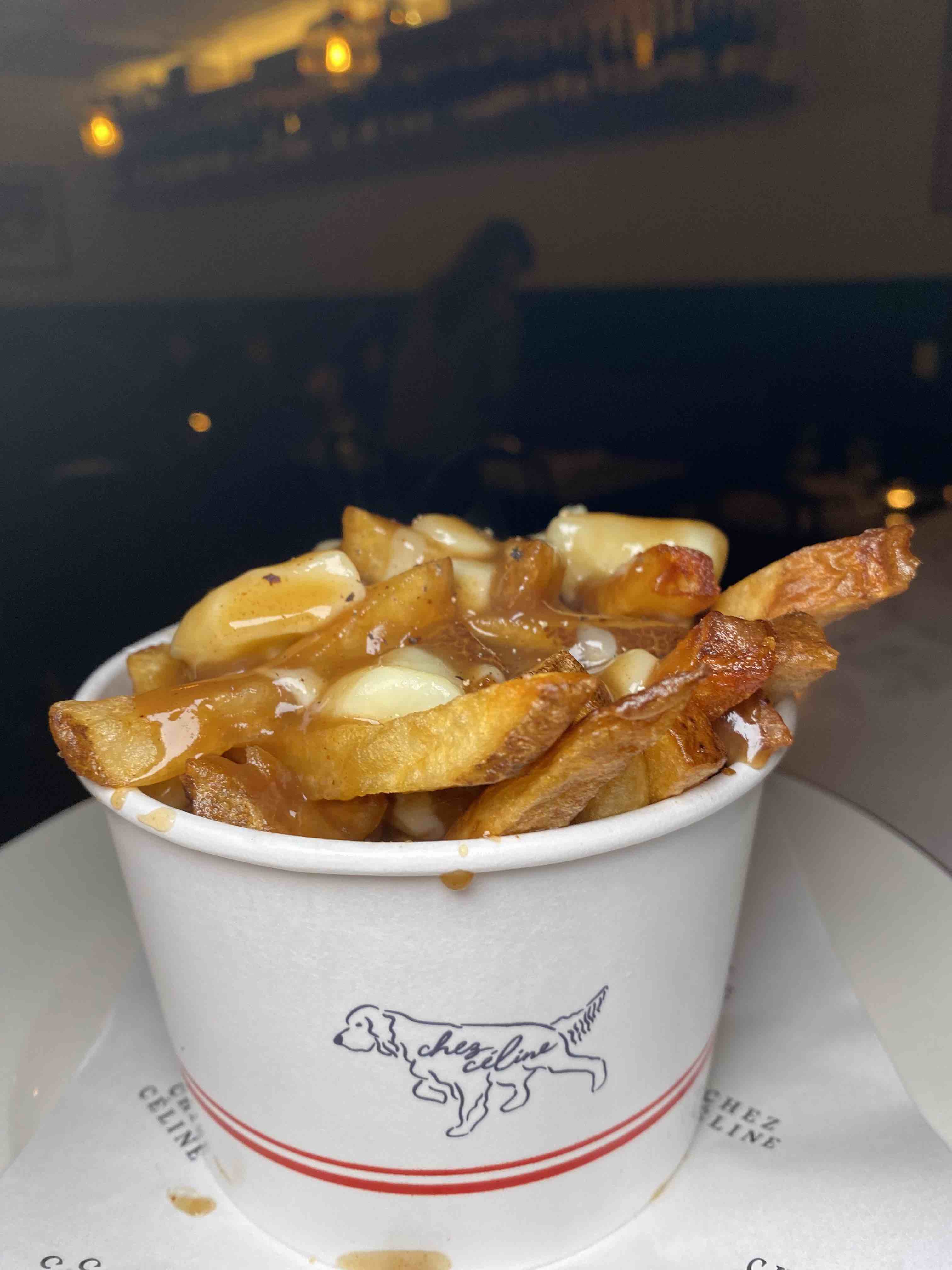 在Chez Céline吃poutine居然是以刀叉來品嘗這酥脆的帶皮薯條配濃味肉汁及芝士拉絲,特別是當你看到這為poutine而設計畫上了招牌快樂小狗的紙杯時,是否有會心微笑的一瞬呢?