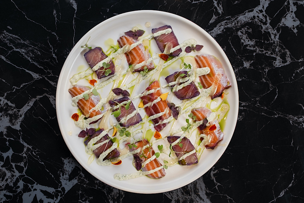 Gravlax duo採用藍鰭吞拿魚的中腹(bluefin chutoro)部位及來自紐西蘭的帝皇三文魚(Ōra king salmon) 來製作,相信是我吃過gravlax中最豪華的版本了。