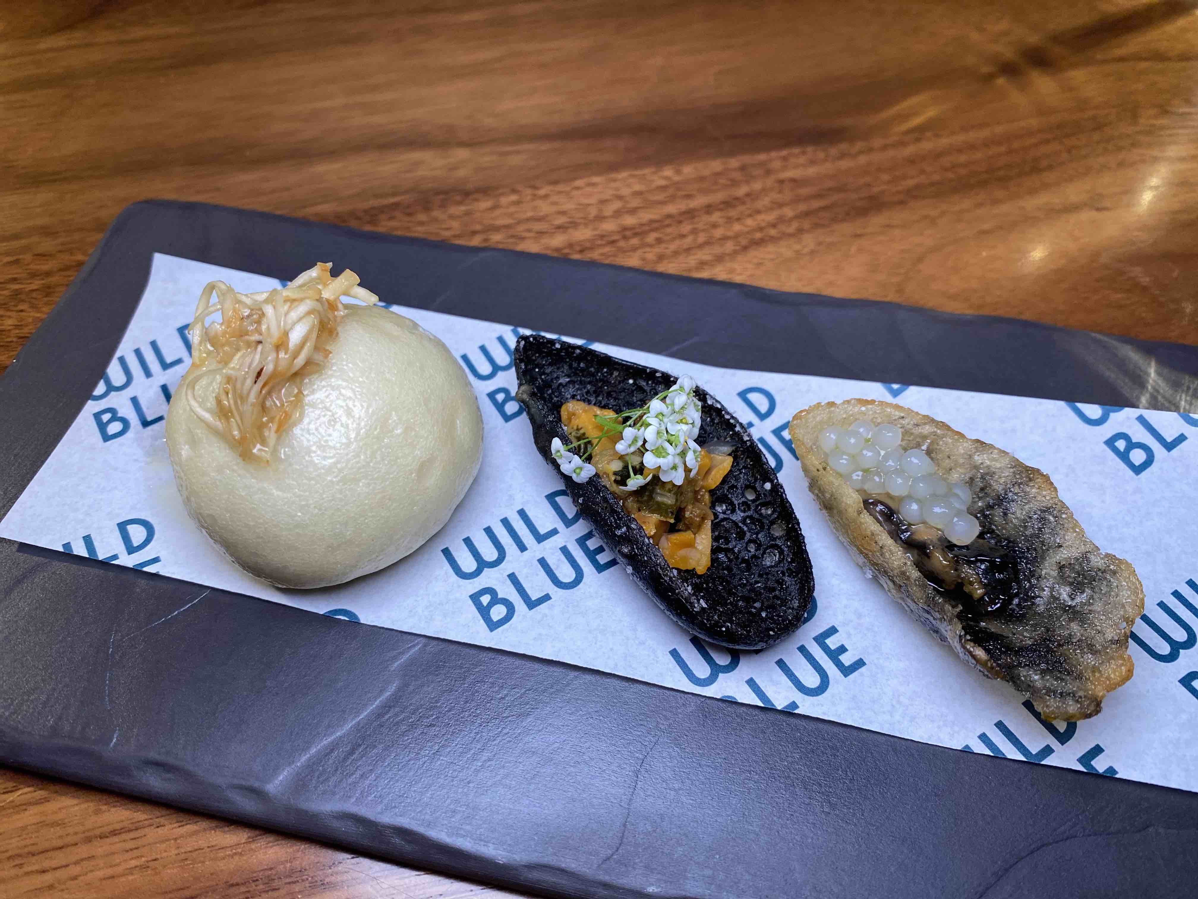 Wild Blue 專注於供應精緻的太平洋西北地區菜肴、永續海鮮和當地食材。餐廳合伙人包括屢獲殊榮的餐廳總監Neil Henderson、榮獲「鐵人料理」稱號並被《溫哥華雜誌》評為「年度最佳廚師」的Chef Alex Chen以及入選餐廳名人堂、Toptable Group 創始人兼前任營運者Jack Evrensel。