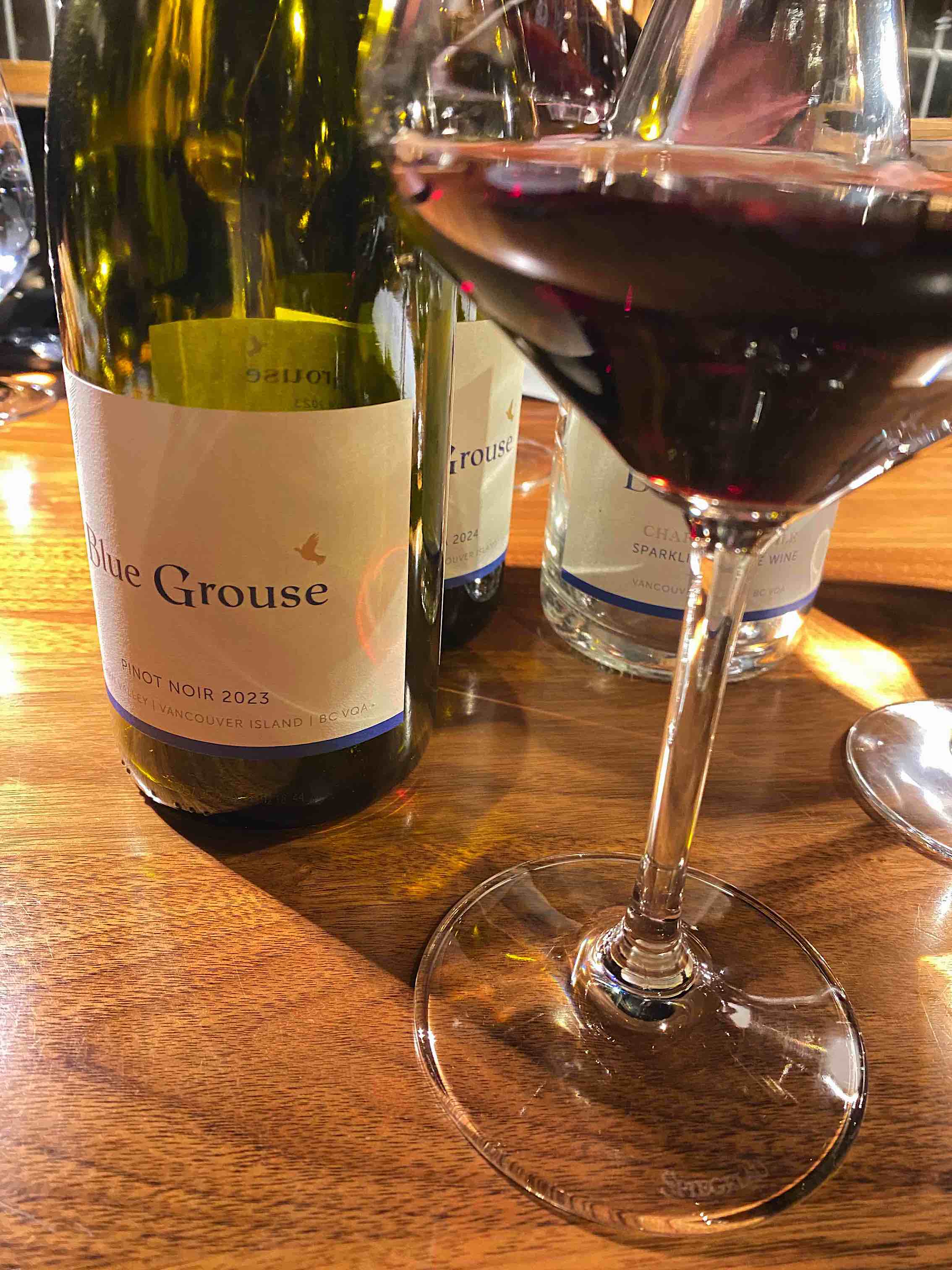 250-743-3834/www.bluegrouse.ca)坐落於溫哥華島南部Duncan鎮附近山坡,是區內最老的葡萄園之一,所植的葡萄品種有Pinot Gris、Pinot Noir、Muller Thurgau、Ortega、Black Muscat、Siegerrebe和Bacchus等。有的葡萄籐已種植了數十年,老籐上的纍纍果實富含濃郁果味,有助於釀製上佳酒品。