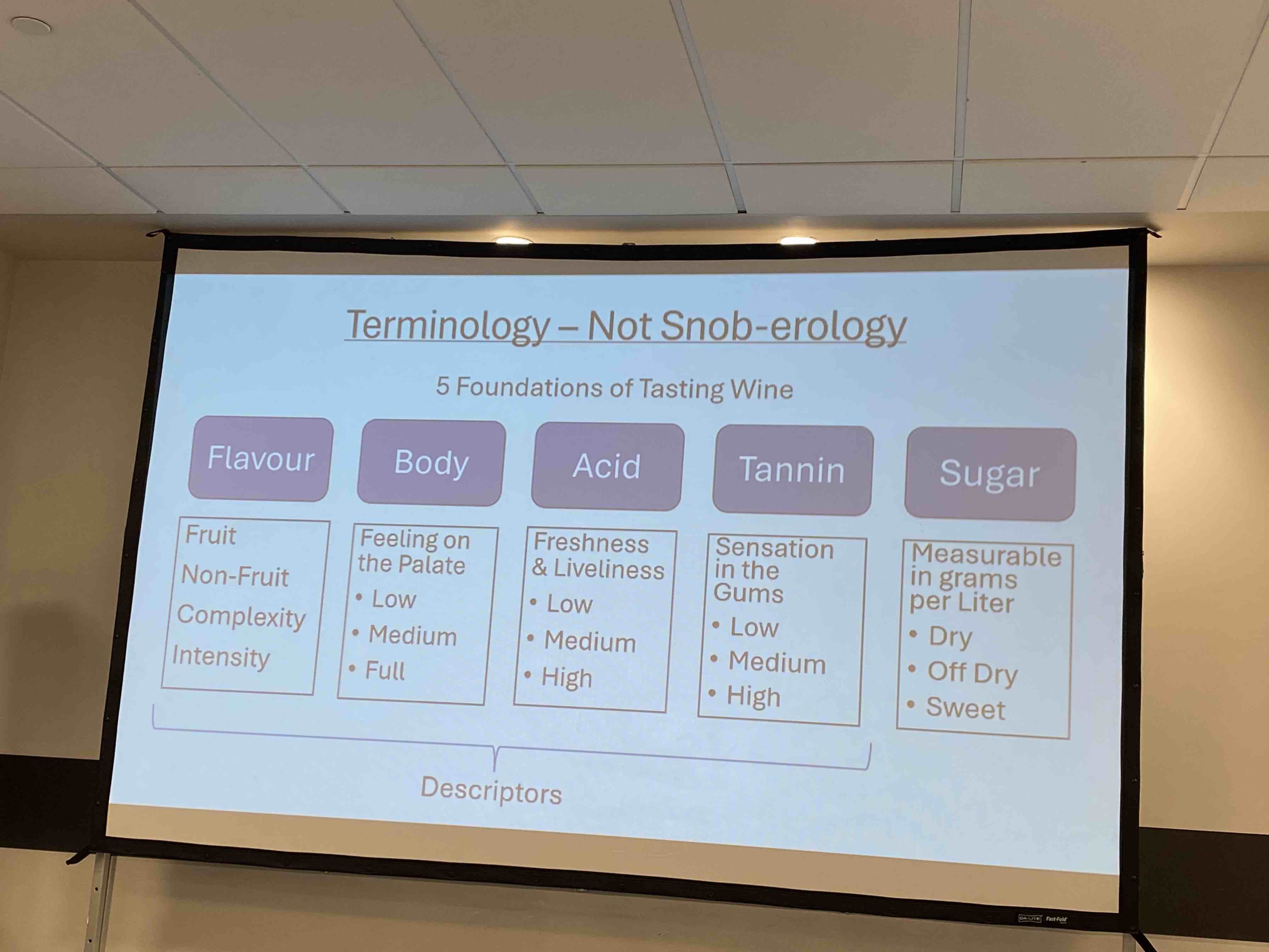每次去酒房或參加葡萄酒活動都不知道該從何入手?這講座分享了一些實用技巧、專業術語和品酒用語,透過即場品嘗酒品,對照主持人Ian Casterton及Chris Turyk的提示及評語,讓人認識葡萄酒基礎知識,如何謂flavour、body、acid、tannin、sugar,然後再追尋concentration、complexity、balance等變化。
