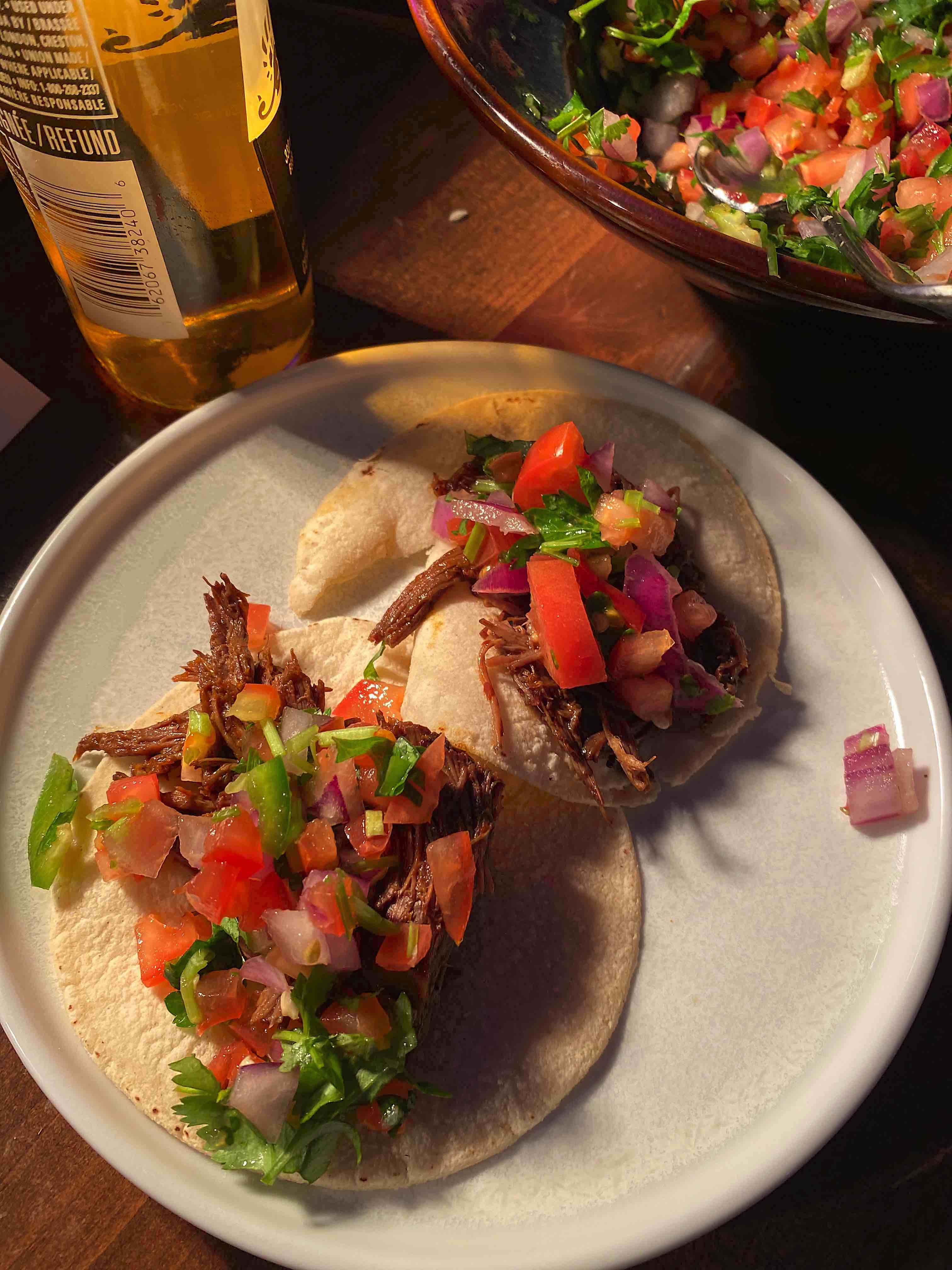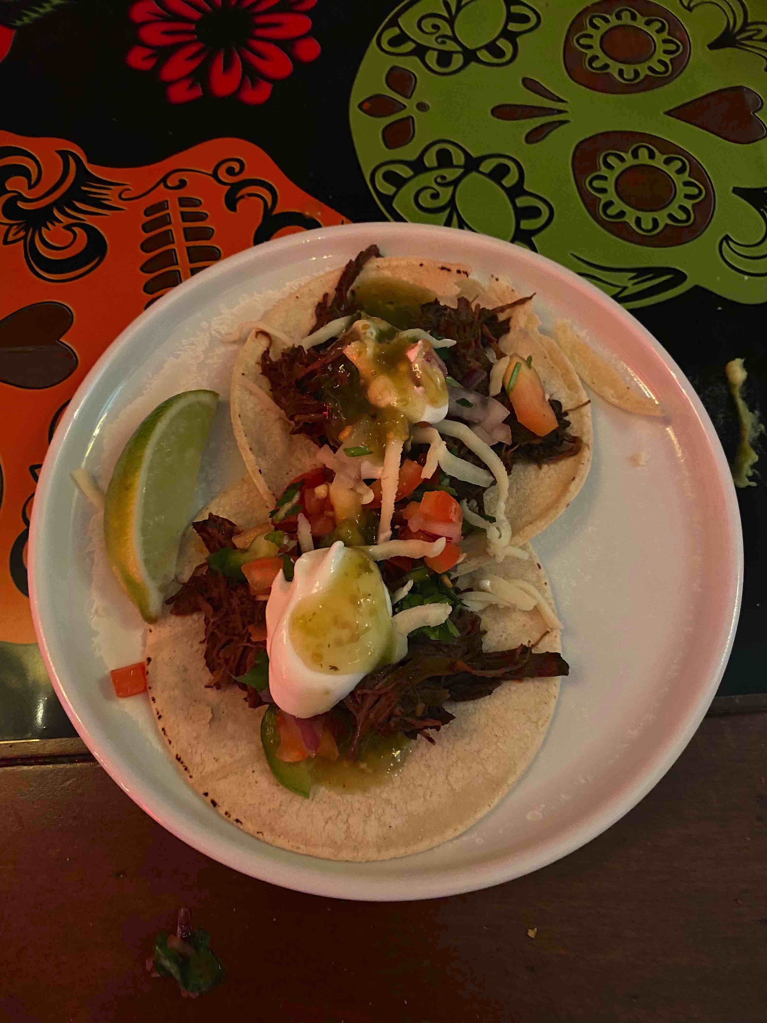 雖然taco是無限制任食,但人龍頗長,我挑了個以corn tortillas包著牛短肋配cortina、shredded cabbage、cream atria、pico de gallo及salsa suave,吃兩個已經半飽,食友則挑了豬肉餡料而讚不絕口。