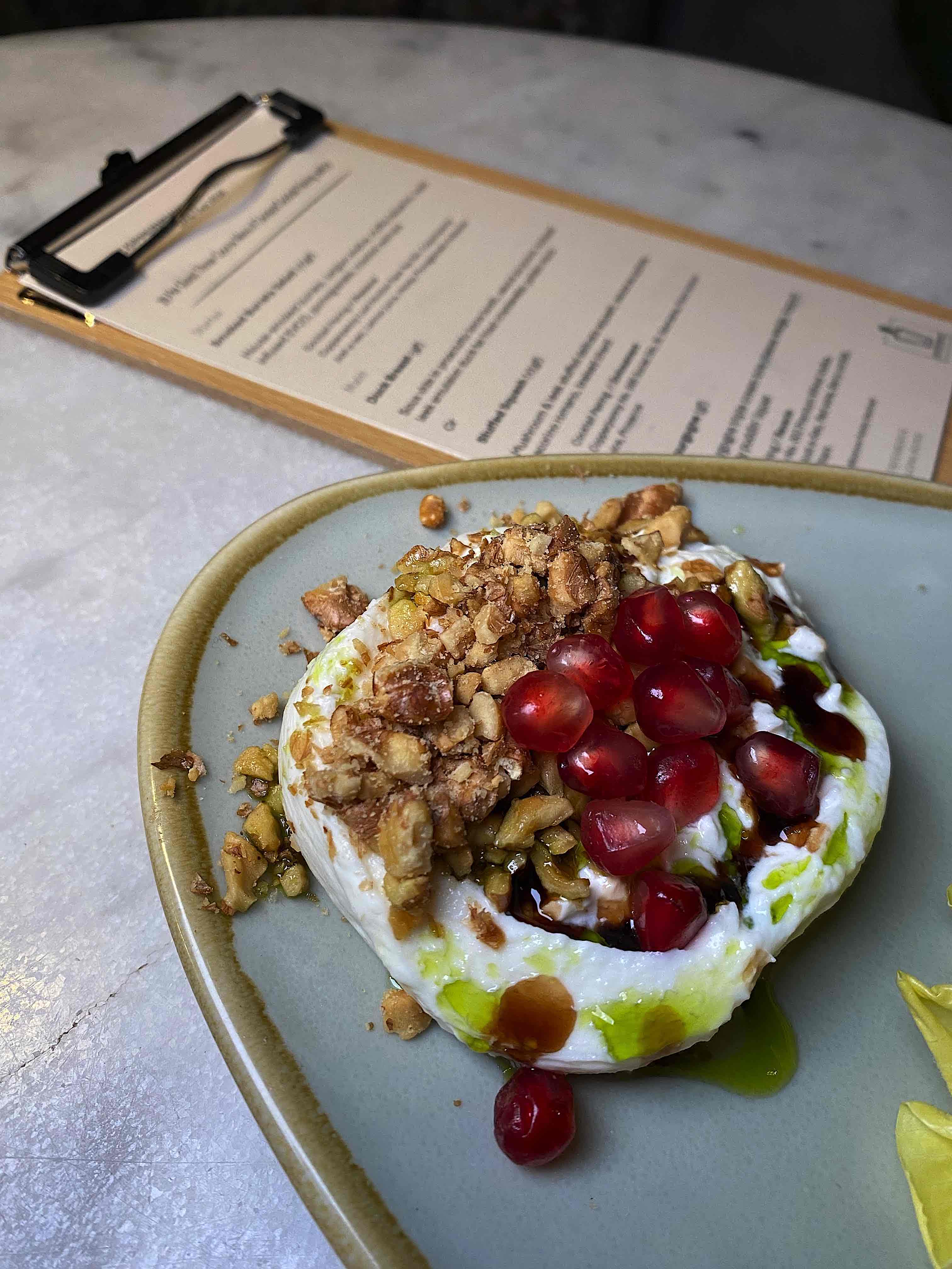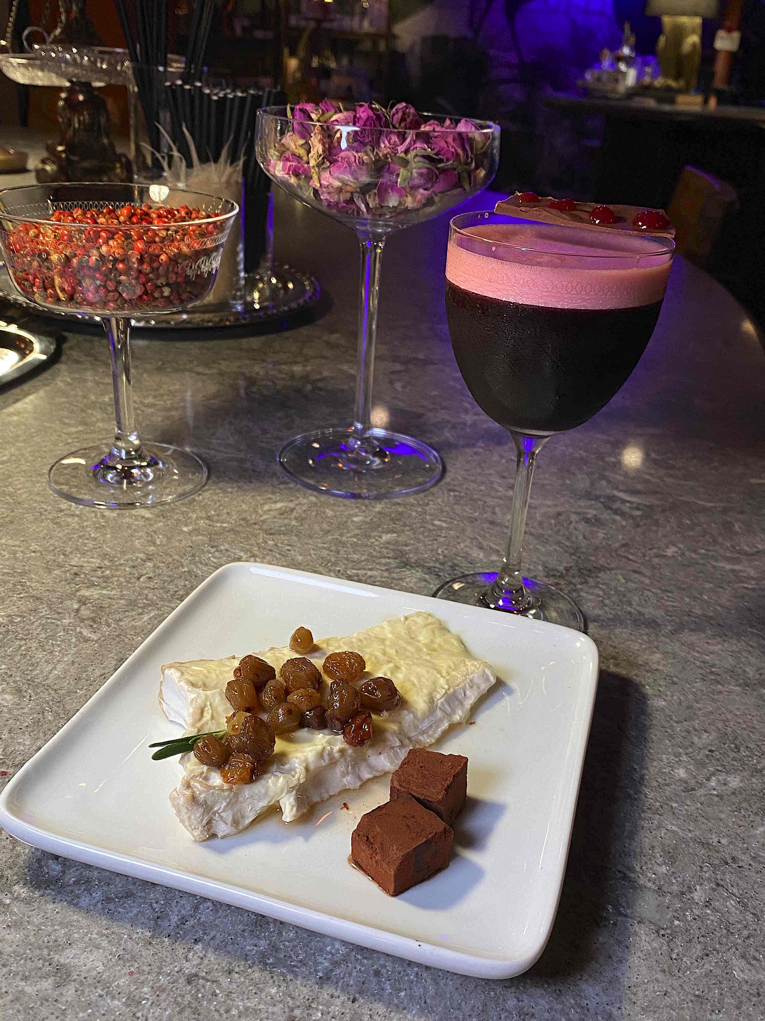 勃艮地芝士(Delice de Bourgogne)是產自法國勃艮第的三倍濃郁奶油芝士,口感與brix相似但奶油更多,故而顯得格外柔滑細膩,充滿濃濃的奶香及earthy風味,這款飯後甜點figgy de bourgogne採用了Delice de Bourgogne然後灑以釀酒坊只於年末限量推出的特釀Figgy Puddin’ Liqueur,再加巧克力及泡漬葡萄作點綴。