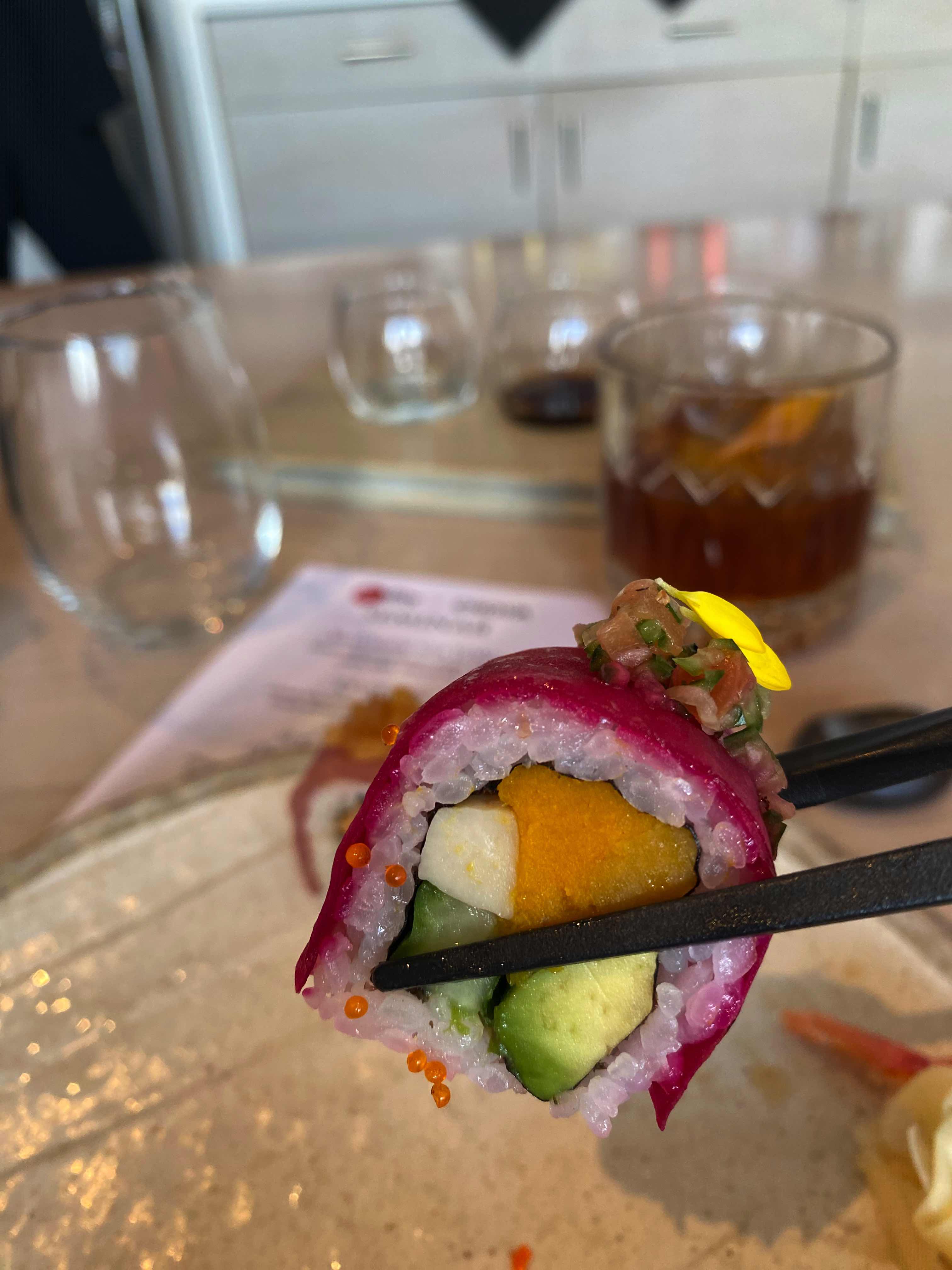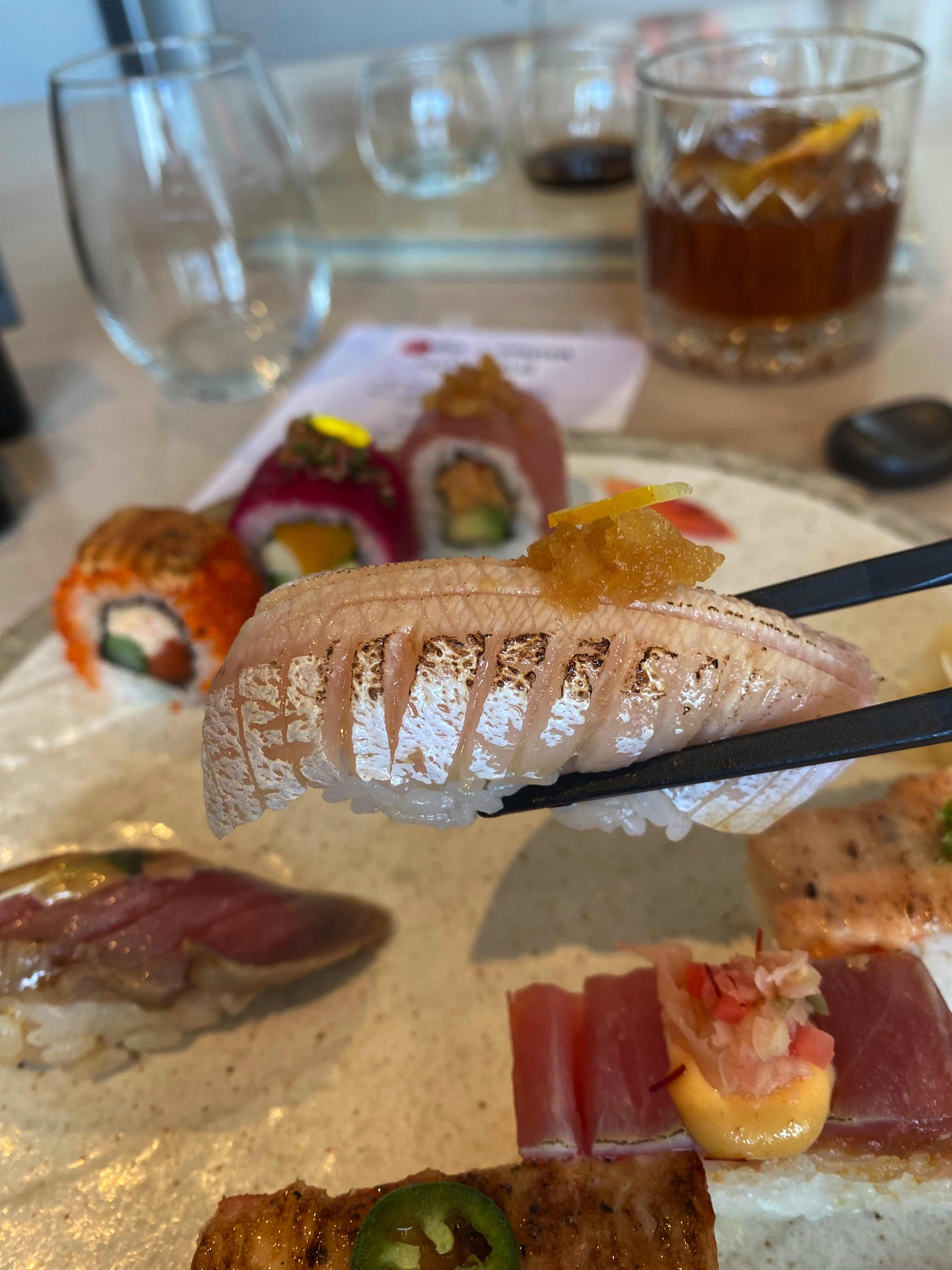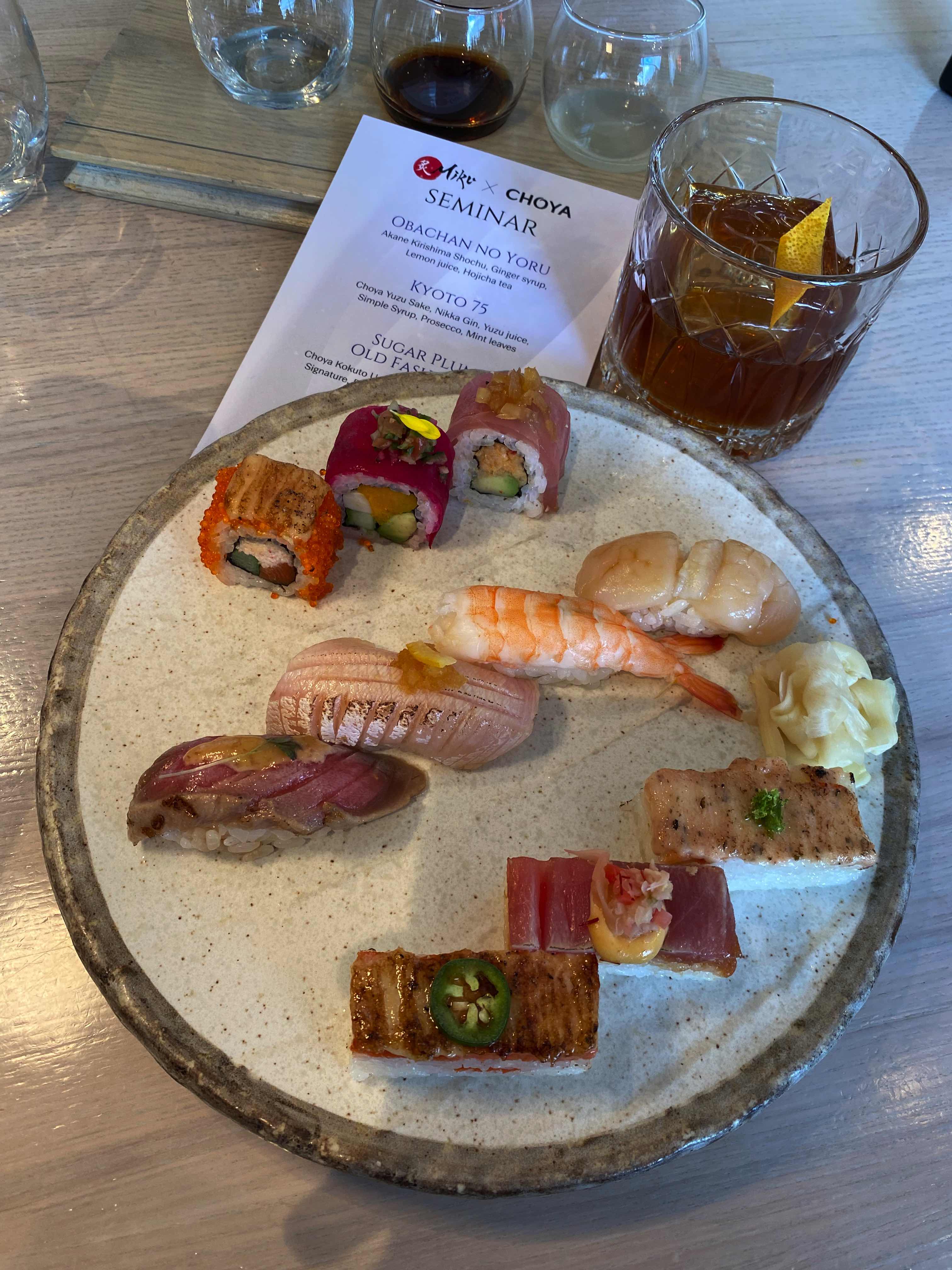 為什麼我形容這場獨家大師班是沉浸式的經驗呢?除了品味以上三款酒品及聆聽故事之外,現場更供應Miku的招牌菜,多款手握壽司的各異風味及炙燒押壽司的微微焦香,再配搭由Miku酒吧團隊精心調製的雞尾酒,一品一嚼都是大滿足。在整個活動過程中,讓人全方位領略這些酒品的多樣性和優雅魅力。